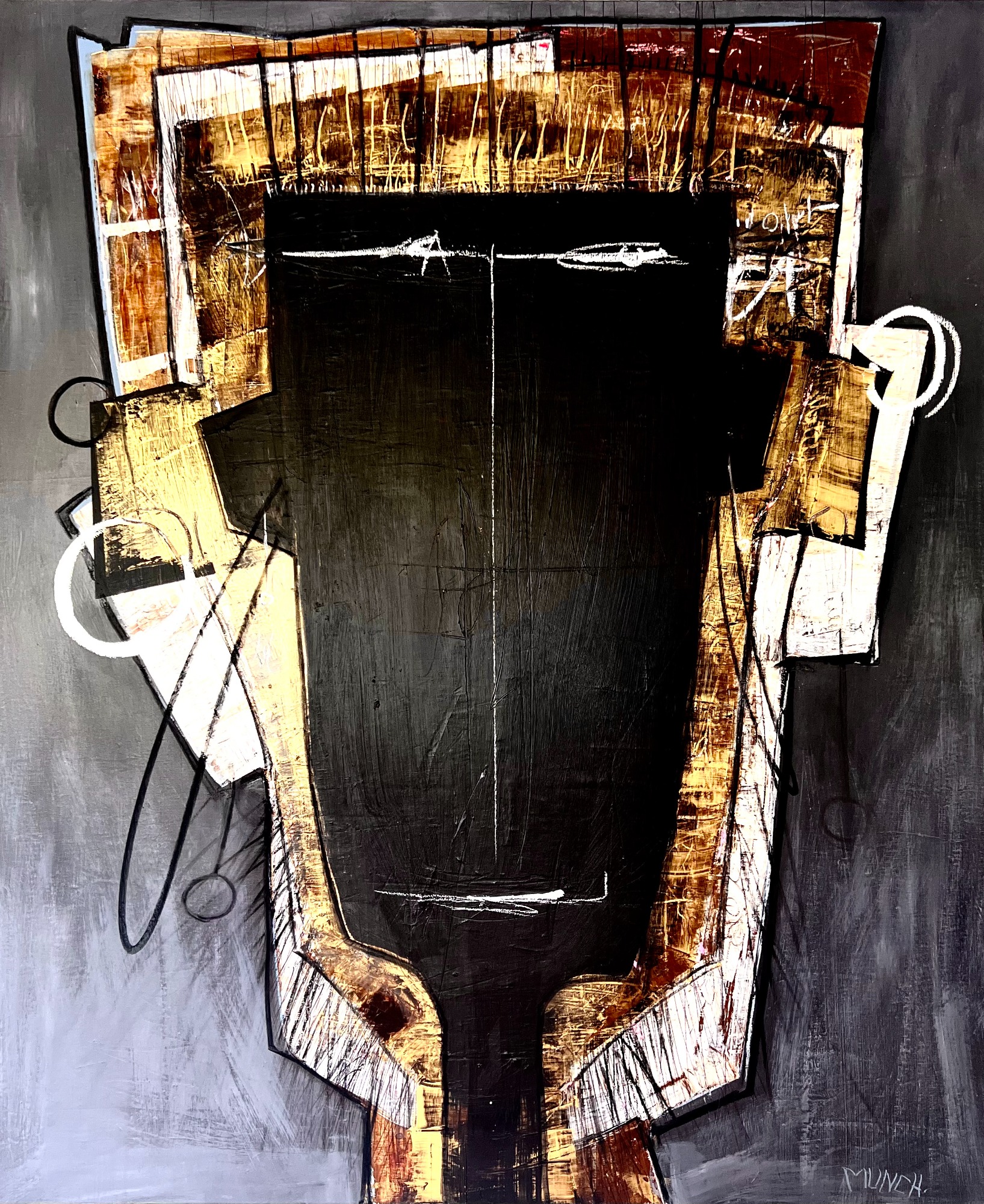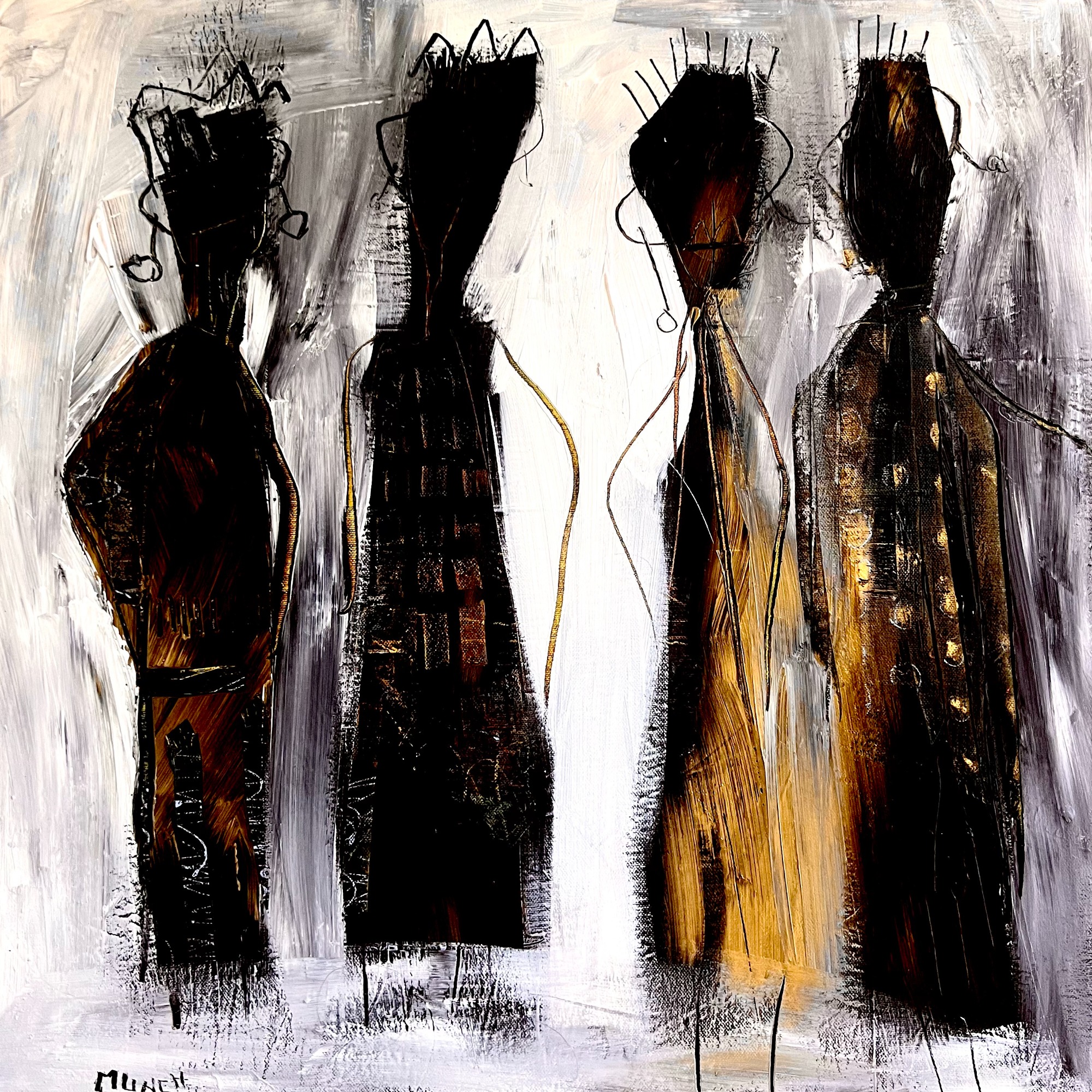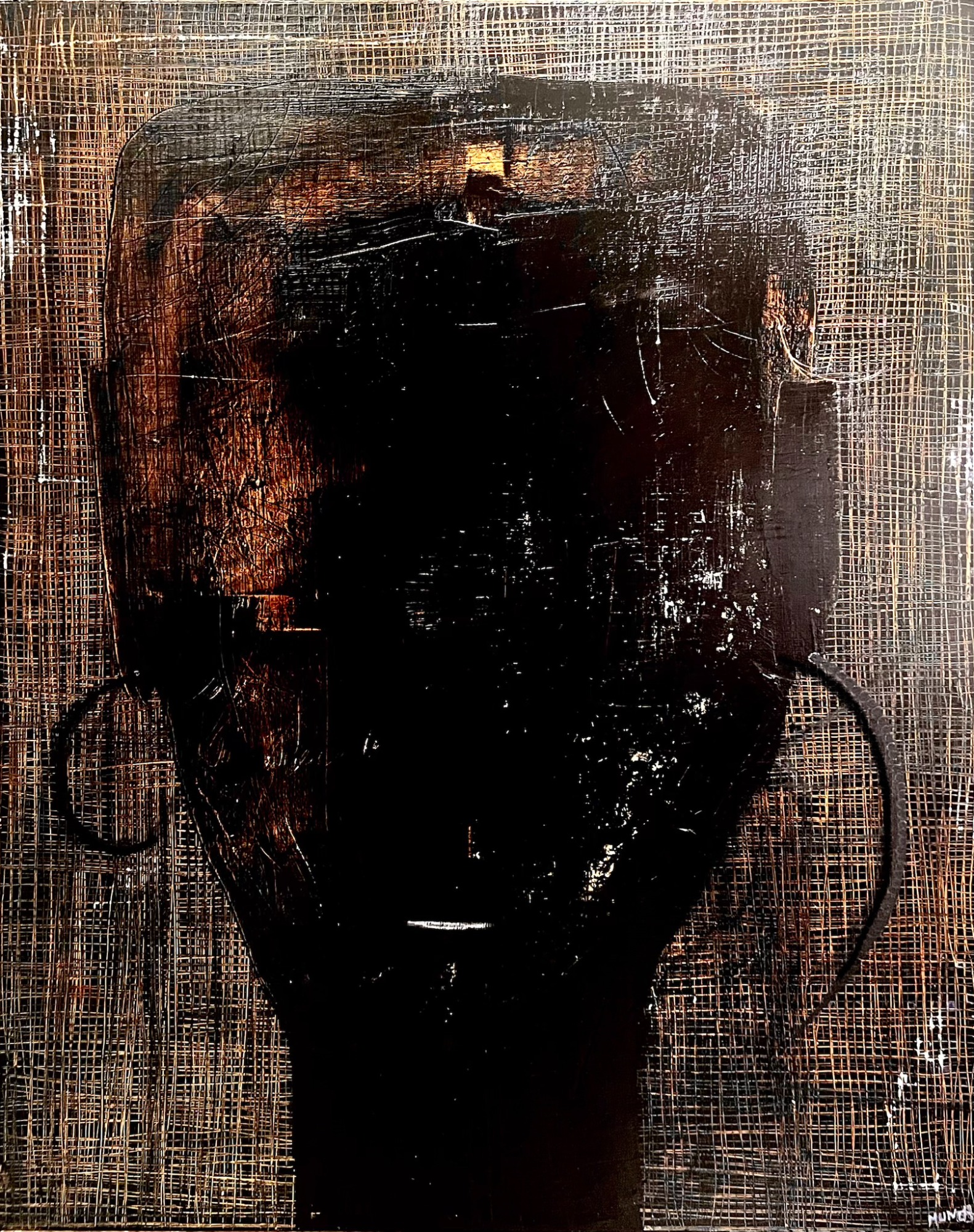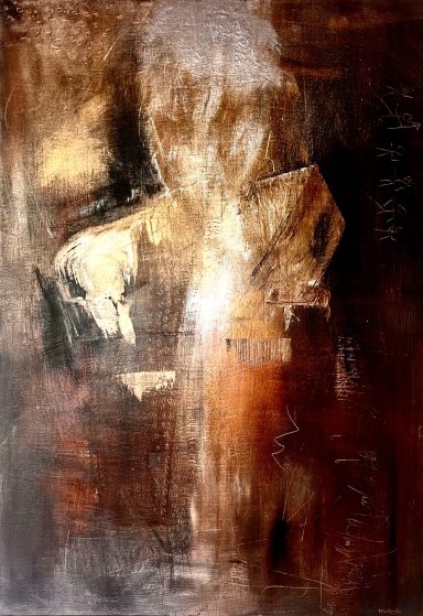 Evoquant un sentiment de mystère "Mind maze" présente une présence intrigante. Mélange d'argent, de terre de sienne, de noir et d'or.