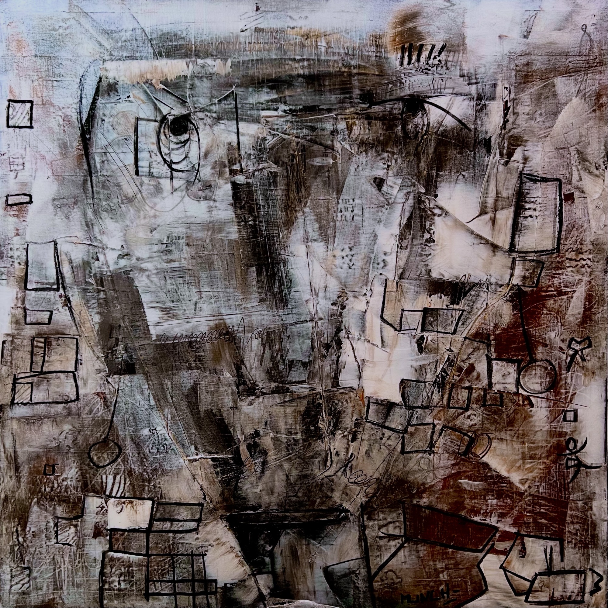 ✉️ Réserver cette œuvreUN HOMME DE PIERRE AU COEUR D'OR - 100x100cm
