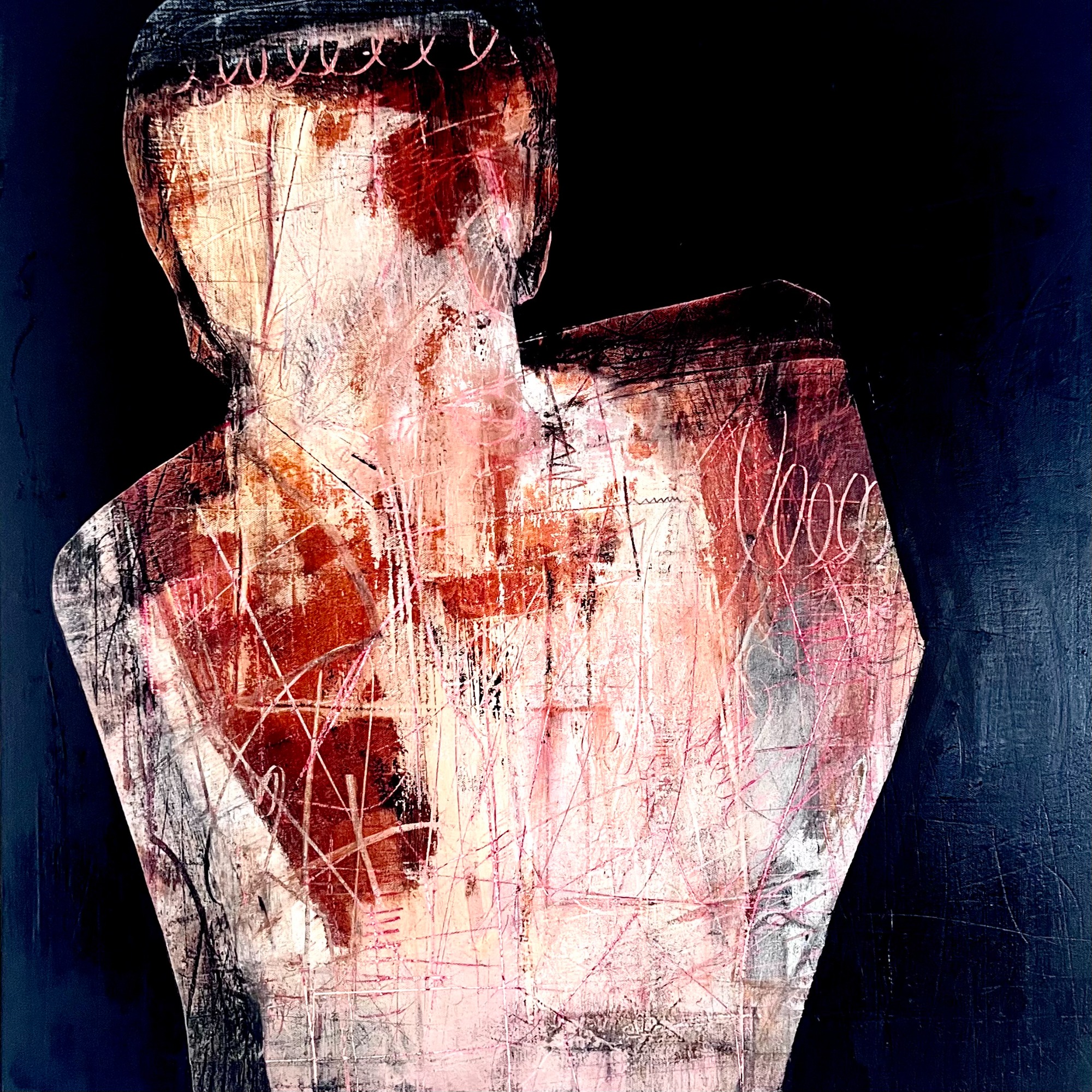 ✉️ Réserver cette œuvreL'HOMME DE PORCELAINE - 60x60cm